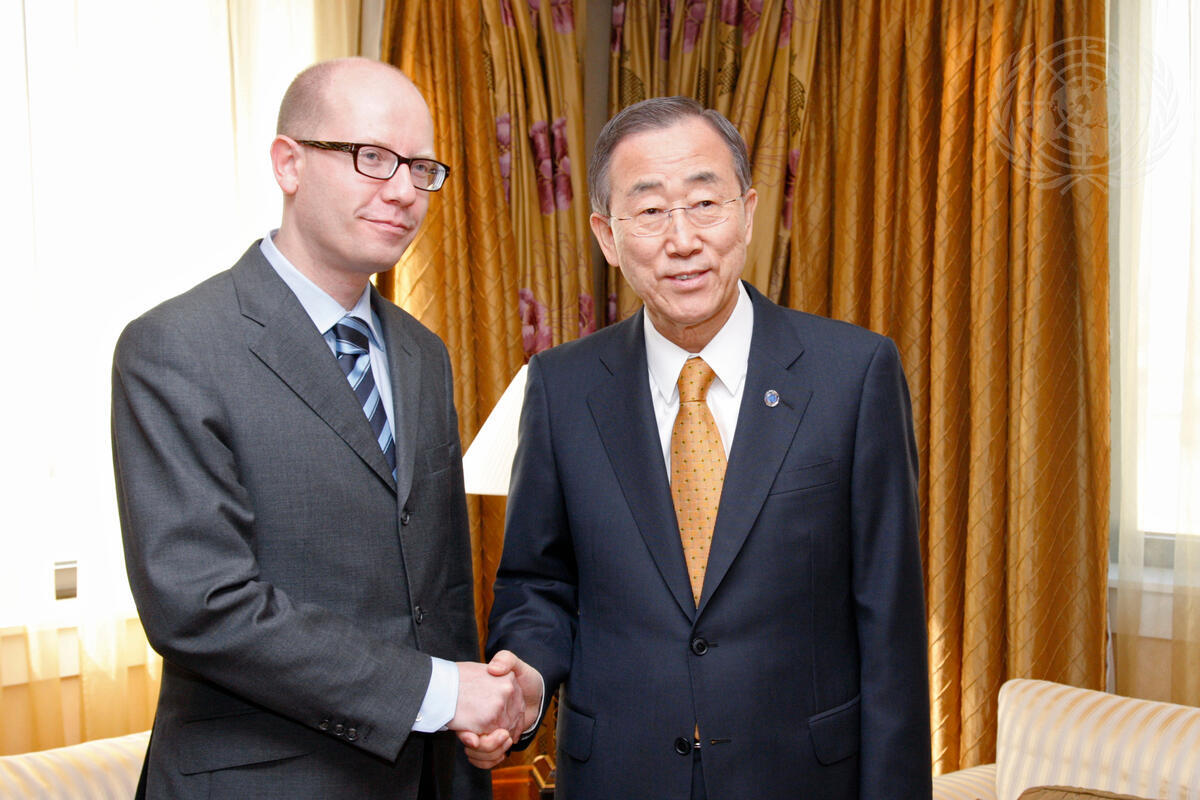 Secretary-General Ban Ki-moon (right) meets with Bohuslav Sobotka, Leader of the opposition Czech Social Democratic Party (CSSD), in Prague, Czech Republic.