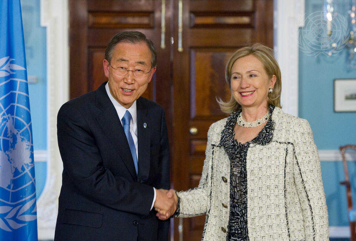 Secretary-General Ban Ki-moon (left) meets with Hillary Rodham Clinton, Secretary of State of the United States of America, in Washington, D.C.