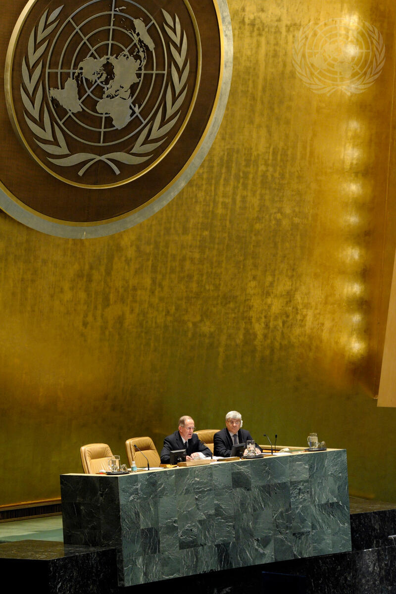Joseph Deiss, President of the sixty-fifth session of the General Assembly, chairs the meeting to declare the first International Day of Human Space Flight and to reaffirm “the important contribution of space science and technology in achieving sustainable development goals and increasing the well-being of States and peoples”.