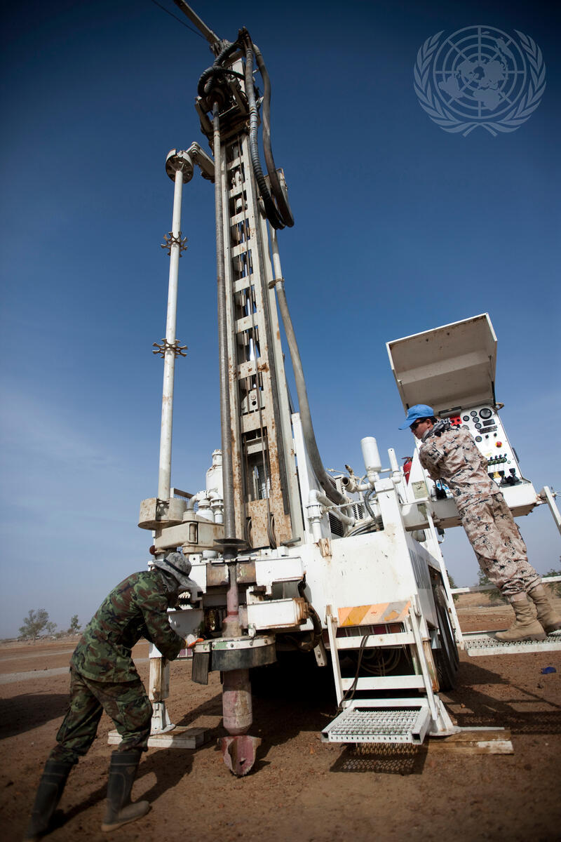 Thai officers of the African Union-United Nations Hybrid Operation in Darfur (UNAMID) use a waterhole built by their contingent in Mukhjar, where the contingent is based, in West Darfur, Sudan.