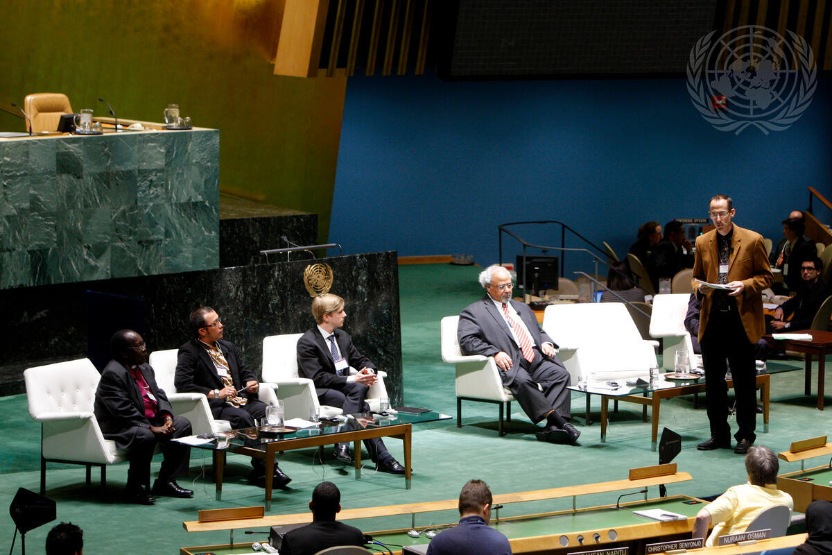 Wide view of a panel discussion entitled ""Enhancing Community-Level Access: Opportunities for Healing Social and Systemic Ills"", held in preparation of the General Assembly’s High-level Meeting on HIV/AIDS (8-10 June 2011).