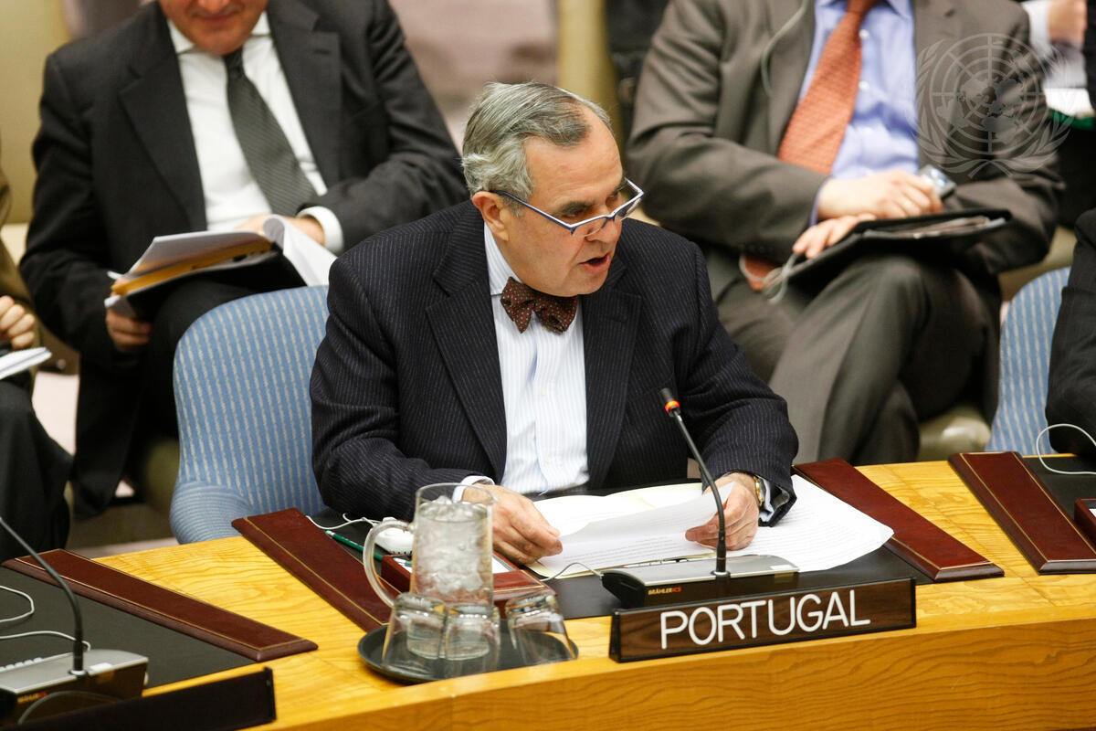 José Filipe Moraes Cabral, Permanent Representative of Portugal to the UN and Chair of the Committee established pursuant to resolution 1970 (2011), briefs the Security Council. The Committee is tasked with overseeing the implementation of sanctions on Libya, as outlined in both resolutions 1970 and 1973.
