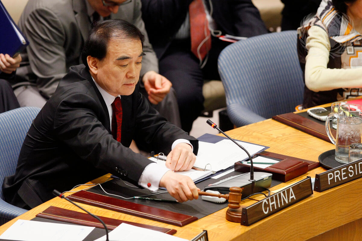 Li Baodong, Permanent Representative of the People’s Republic of China to the UN and President of the Security Council for March, chairs a meeting of the Council on the situation in Libya. At the meeting Members were briefed by the Chair of the Committee established pursuant to resolution 1970 (2011), tasked with overseeing the implementation of sanctions on Libya, as outlined in both resolutions 1970 and 1973.
