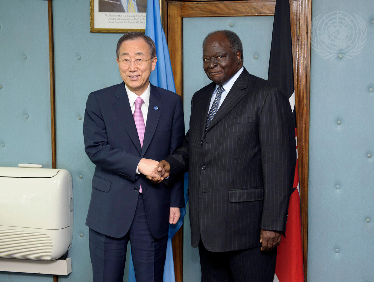 Secretary-General Ban Ki-moon (left) meets with Mwai Kibaki, President of the Republic of Kenya, in capital Nairobi.