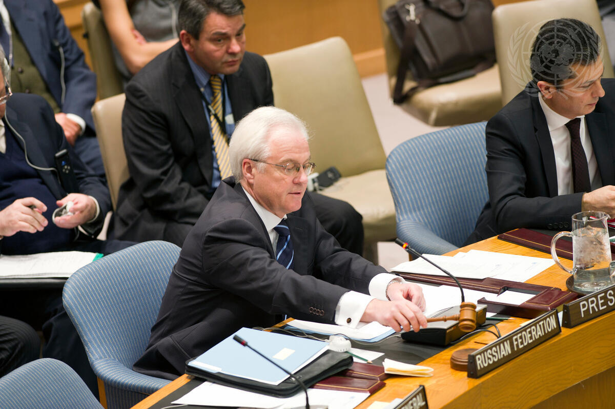 Vitaly I. Churkin, Permanent Representative of the Russian Federation to the UN and President of the Security Council for December, chairs meeting Security Council on the situation in the Middle East, including the Palestinian question.