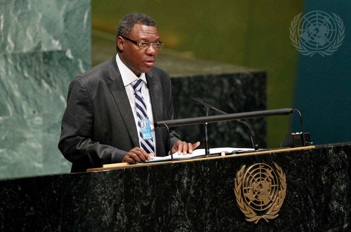 Yamba Lapfa Lambang Mathieu of the Democratic Republic of the Congo transmits the report of the Kimberley Process to the General Assembly. The report details the role of diamonds in fuelling conflict.