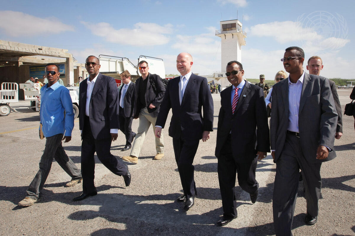 William Hague (centre), United Kingdom Secretary of State for Foreign and Commonwealth Affairs, arrives in Mogadishu for an official visit in Somalia, the first to be made by a U.K. Foreign Secretary in more than twenty years.