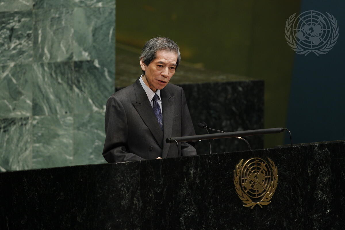 Tsuneo Nishida, Permanent Representative of Japan to the UN, addresses a meeting of the General Assembly on Syria.