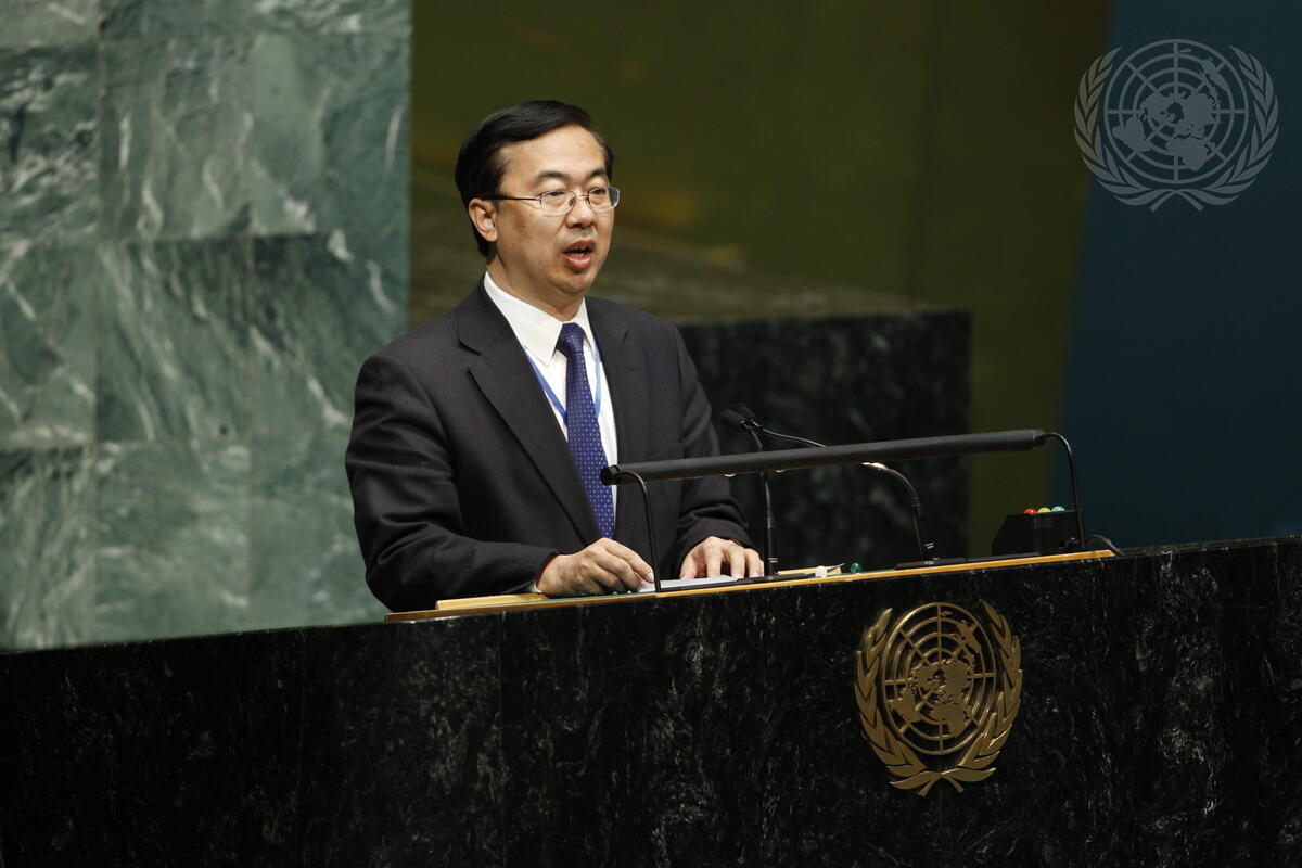 Wang Min, Deputy Permanent Representative of China to the UN, addresses a meeting of the General Assembly on Syria.