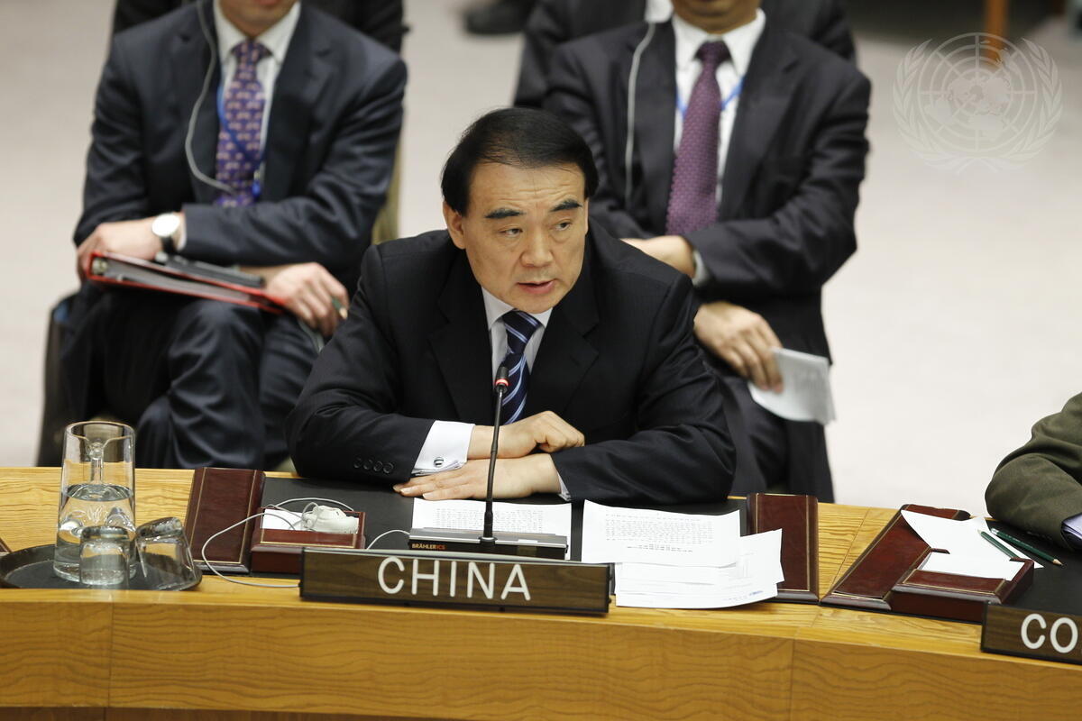 Li Baodong, Permanent Representative of China to the UN, addresses the Security Council after the Council’s vote on a draft resolution concerning Syria. The draft, which demands an end to the violence by the Syrian Government against its people and supports the League of Arab States’ decision to facilitate a Syrian-led political transition to democracy, was voted in favour by thirteen Members of the Council and vetoed by Mr. Baodong along with Vitaly Churkin of the Russian Federation.