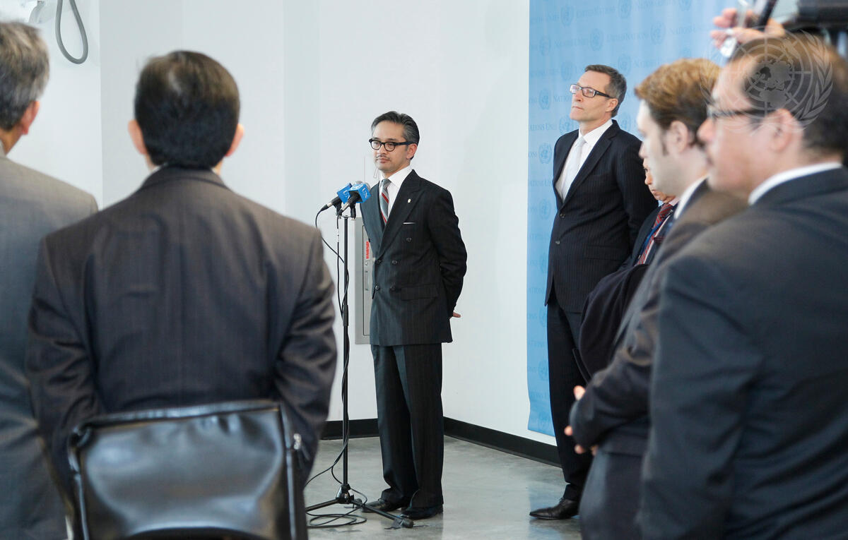R.M. Marty M. Natalegawa (at microphone), Indonesian Minister for Foreign Affairs, briefs journalists on Indonesia's deposit today of the instrument of ratification to the Comprehensive Nuclear-Test-Ban Treaty. Behind Mr. Natalegawa is Tibor Tóth, Executive Secretary of the Preparatory Commission for the Comprehensive Nuclear-Test-Ban Treaty Organization (CTBTO).