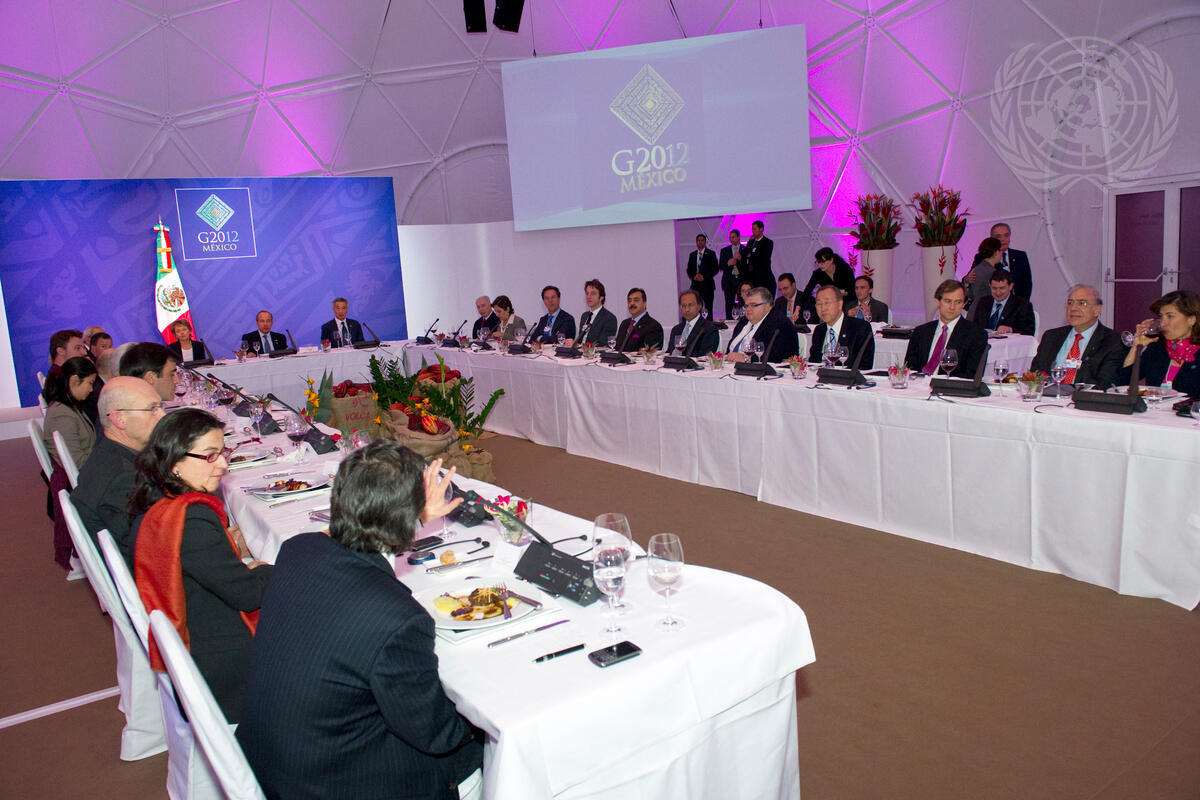 Secretary-General Ban Ki-moon (at right, fourth from right) attends a dinner hosted by Mexico’s President, Felipe Calderón Hinojosa, on the agenda for the upcoming G20 summit, in Davos, Switzerland.