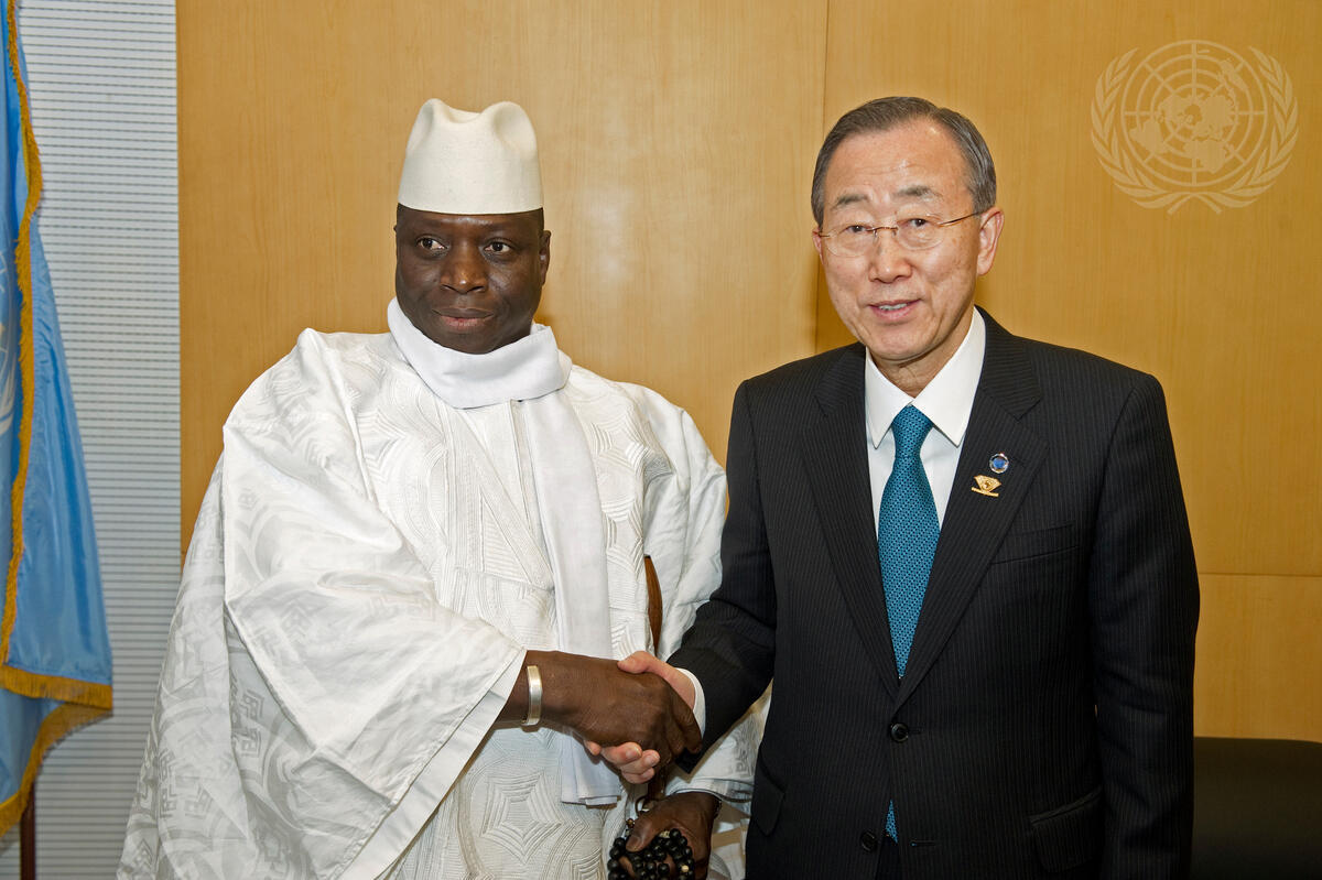 Secretary-General Ban Ki-moon (right) meets with Al Hadji Yahya A.J.J. Jammeh, President of the Republic of the Gambia, in Addis Ababa, Ethiopia.