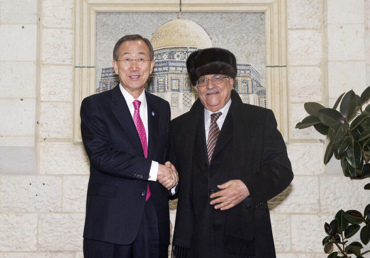 Secretary-General Ban Ki-moon (left) meets with Mahmoud Abbas, President of the Palestinian Authority, in the West Bank city of Ramallah.