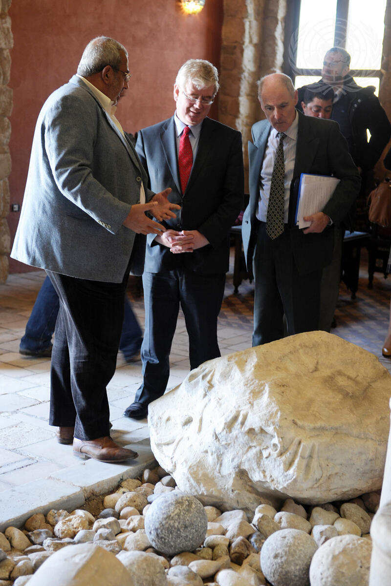 Eamon Gilmore (centre), Deputy Prime Minister and Minister for Foreign Affairs and Trade of Ireland, on a tour during his visit to Gaza to assess the humanitarian situation and meet with the Commissioner-General of UNRWA.