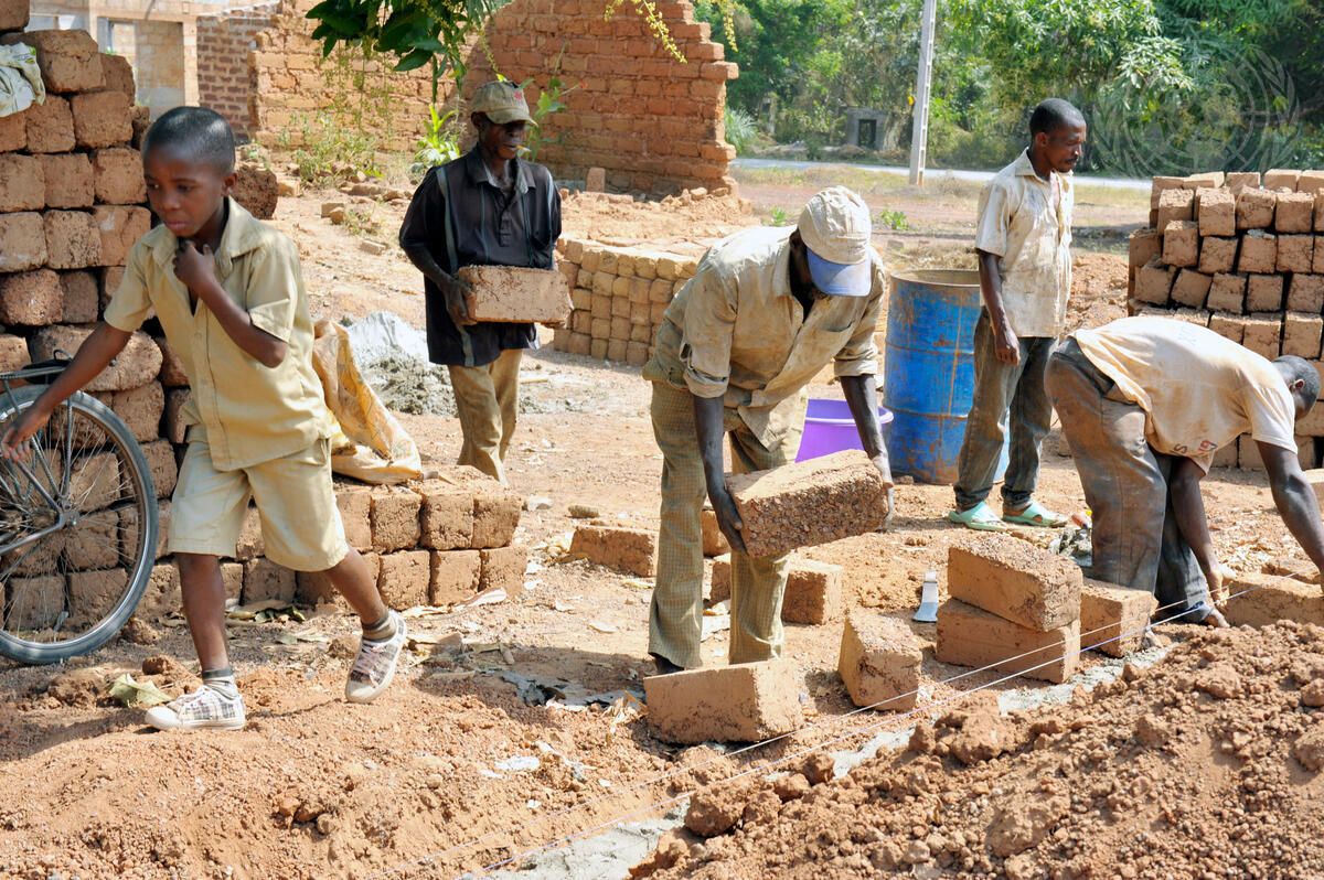 Villagers are working on housing reconstruction and rehabilitation near Duékoué, in the western Moyen-Cavally region of Côte d'Ivoire.
