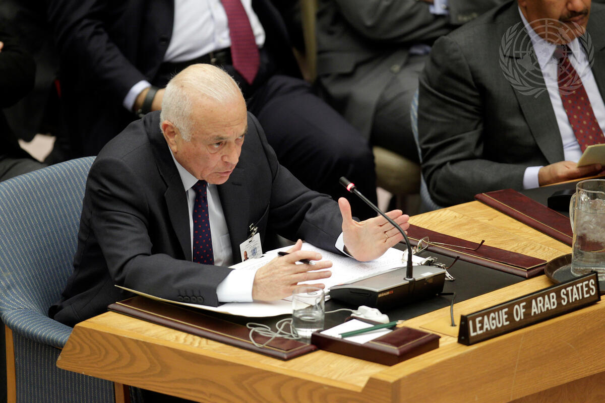 Nabil el-Araby, Secretary General of the League of Arab States, briefs the Security Council at its meeting on the situation in Syria.