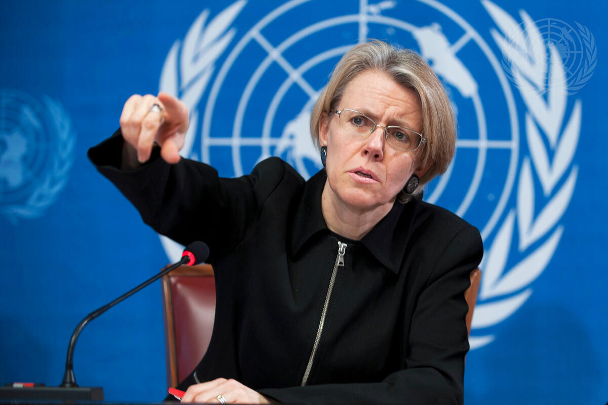 Corinne Momal-Vanian, Director of the UN Information Service, hosts the regular briefing organized by the Service for spokespersons of UN and other international organizations, in Geneva, Switzerland.