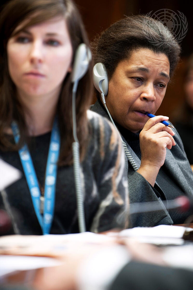 Yvette Morris (right), Chief of the Radio and Television Section of the UN Information Service, attends the regular briefing organized by the Service for spokespersons of UN and other international organizations, in Geneva, Switzerland.