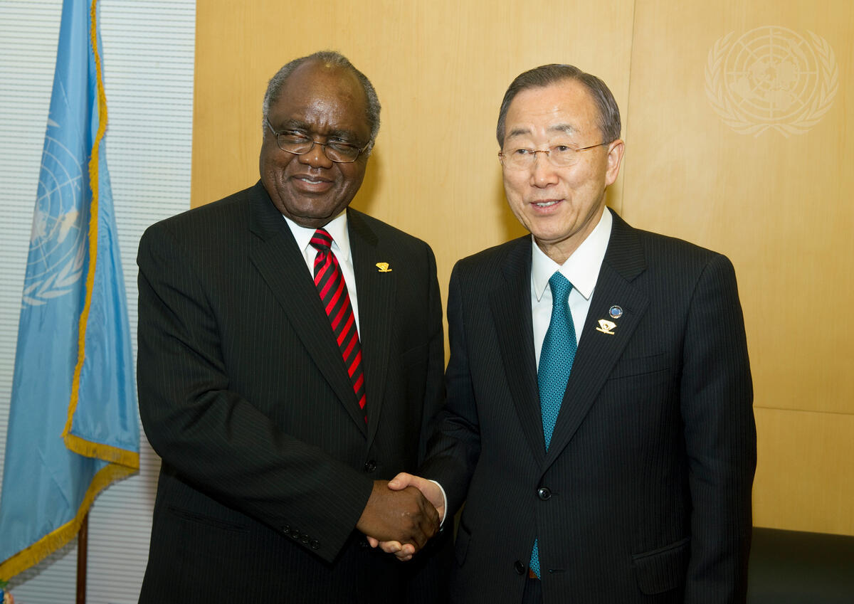 Secretary-General Ban Ki-moon (right) meets with H.E. Mr. Michael Chilufya Sata (President, ZAMBIA)
