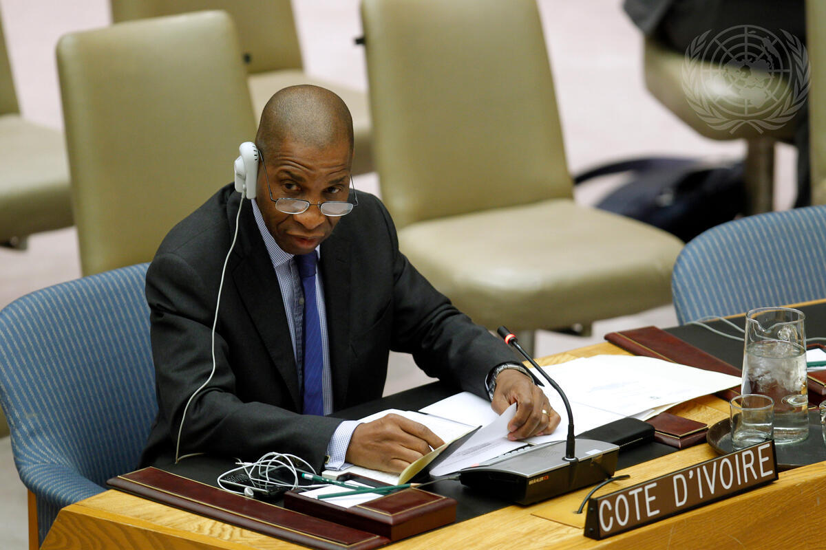 Youssoufou Bamba, Permanent Representative of Côte d’Ivoire to the UN, addresses the Security Council’s meeting on his country.