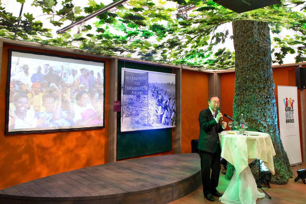As the World Economic Forum meeting continues in Davos today, Secretary-General Ban Ki-moon (at podium) and Archbishop Emeritus Desmond Tutu hosted a private sector brainstorming luncheon that focuses on creating a better world for women and girls. The event will highlight the Every Woman, Every Child initiative, spearheaded by Secretary-General Ban Ki-moon, to mobilize and intensify global action to improve the health of women and children around the world.