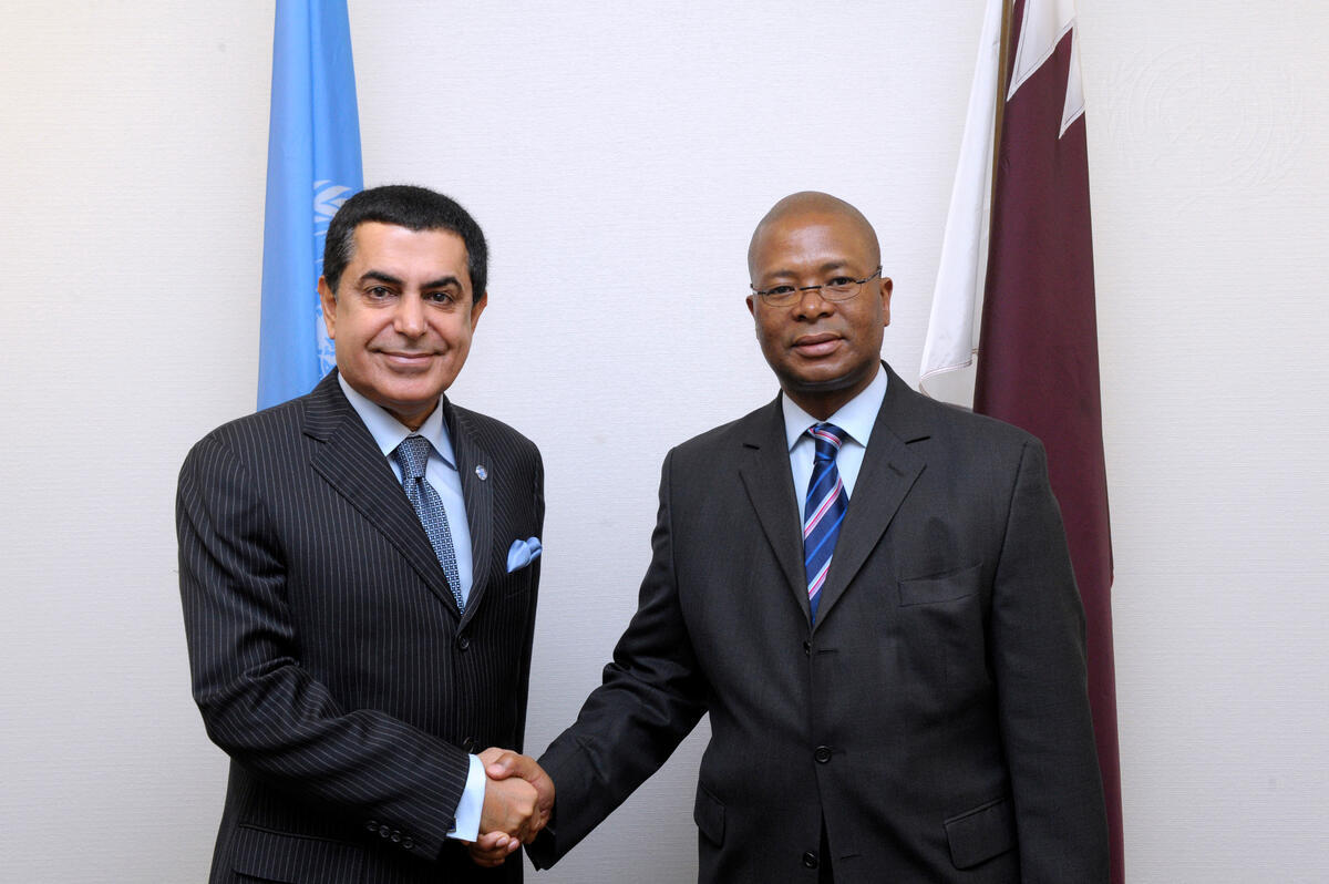 Nassir Abdulaziz Al-Nasser (left), President of the sixty-sixth session of the General Assembly, meets with Baso Sangqu, Permanent Representative of South Africa to the UN and President of the Security Council for the month of January.