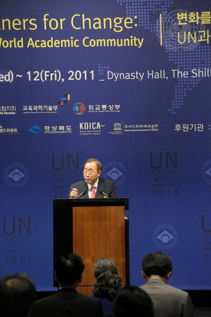 Secretary-General Ban Ki-moon speaks at the opening session of the UN Academic Impact Forum in Seoul, Republic of Korea.