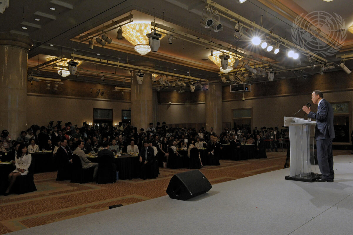 Secretary-General Ban Ki-moon speaks at the launch of “Helping the Children of Africa”, a project by the Korean Red Cross, in Seoul, Republic of Korea.