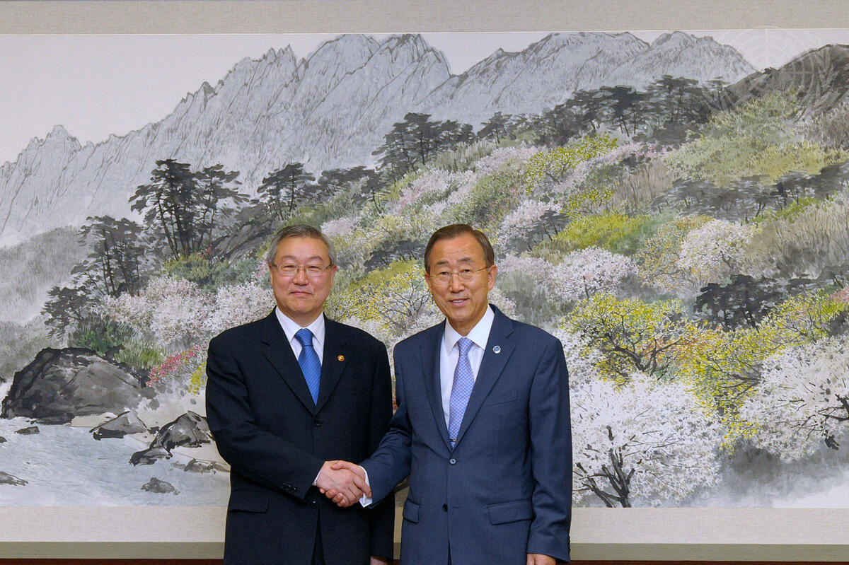 Secretary-General Ban Ki-moon (right) meets with Kim Sung-hwan, Minister for Foreign Affairs and Trade of the Republic of Korea, in Seoul.