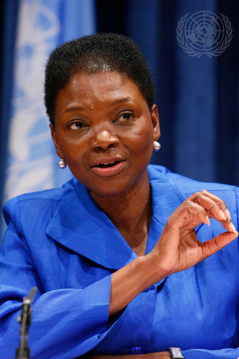 Valerie Amos, Under-Secretary-General for Humanitarian Affairs and Emergency Relief Coordinator, briefs journalists on the third annual World Humanitarian Day, commemorated today at UN Headquarters. Ms. Amos was joined by Anthony Lake, Executive Director of the UN Children’s Fund (UNICEF).