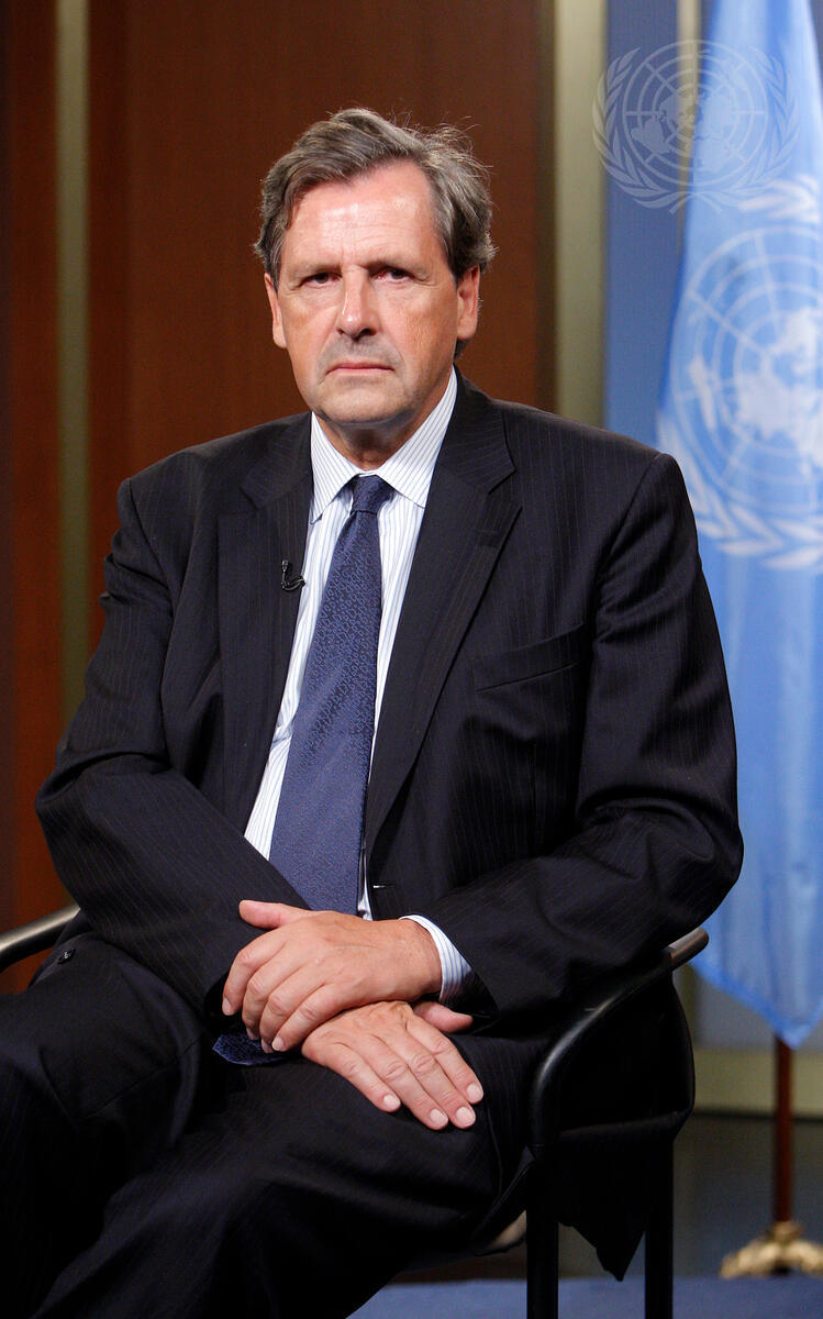 Alain Le Roy, Under-Secretary-General for Peacekeeping Operations, is pictured during an interview by Ari Gaitanis for UN News Service, UN Radio and UNTV.