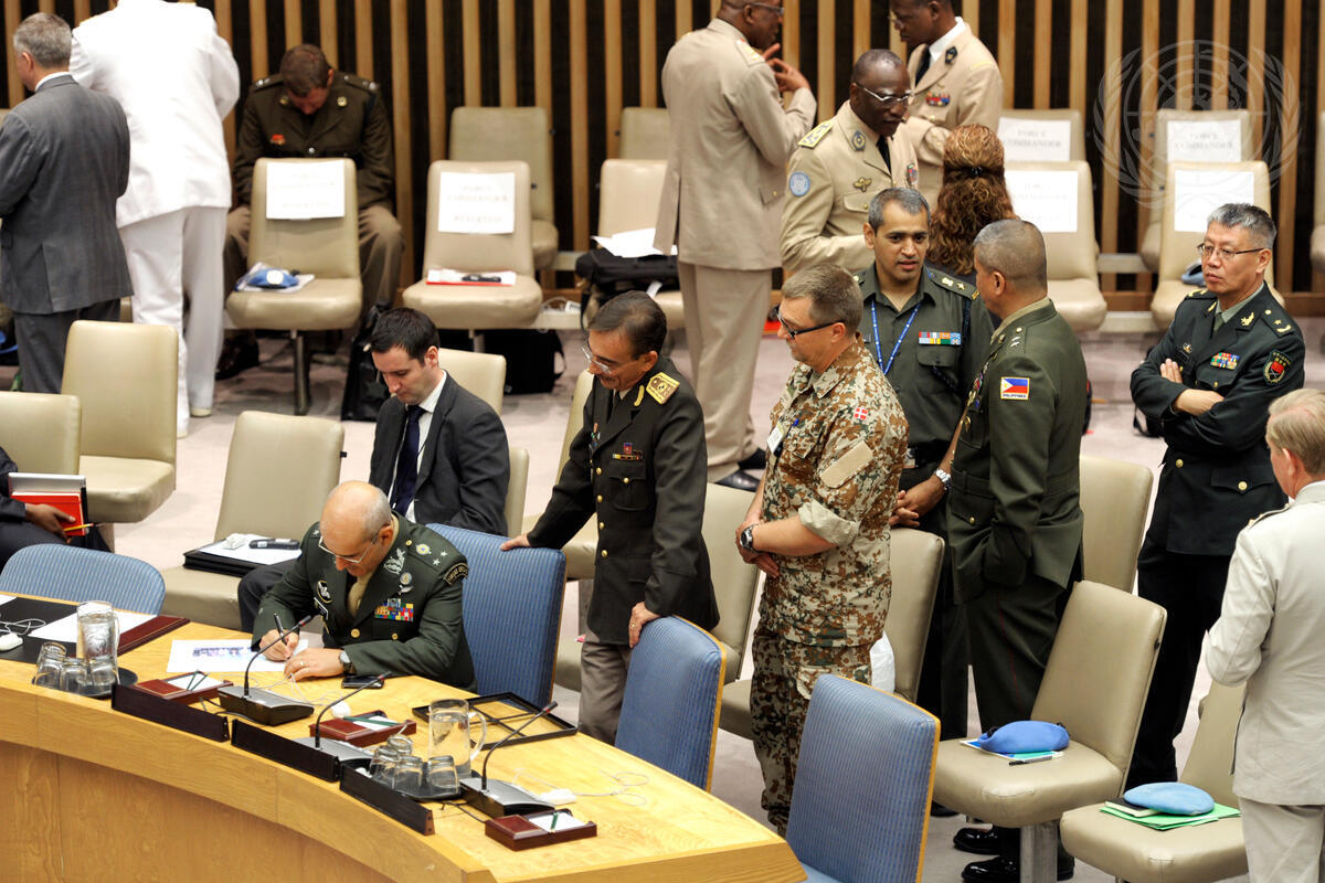 UN peacekeeping officers prepare for the Security Council meeting to review the mandate of the United Nations Operation in Côte d'Ivoire (UNOCI) expiring on 31 July 2011.