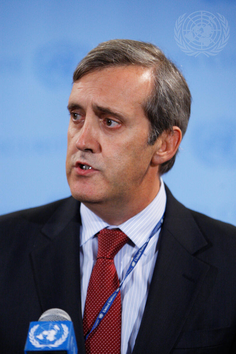 João Maria Cabral, Deputy Permanent Representative of Portugal to the UN, speaks to the press following Security Council consultations on Syria as the government in that country continues its use of force against civilian protesters.