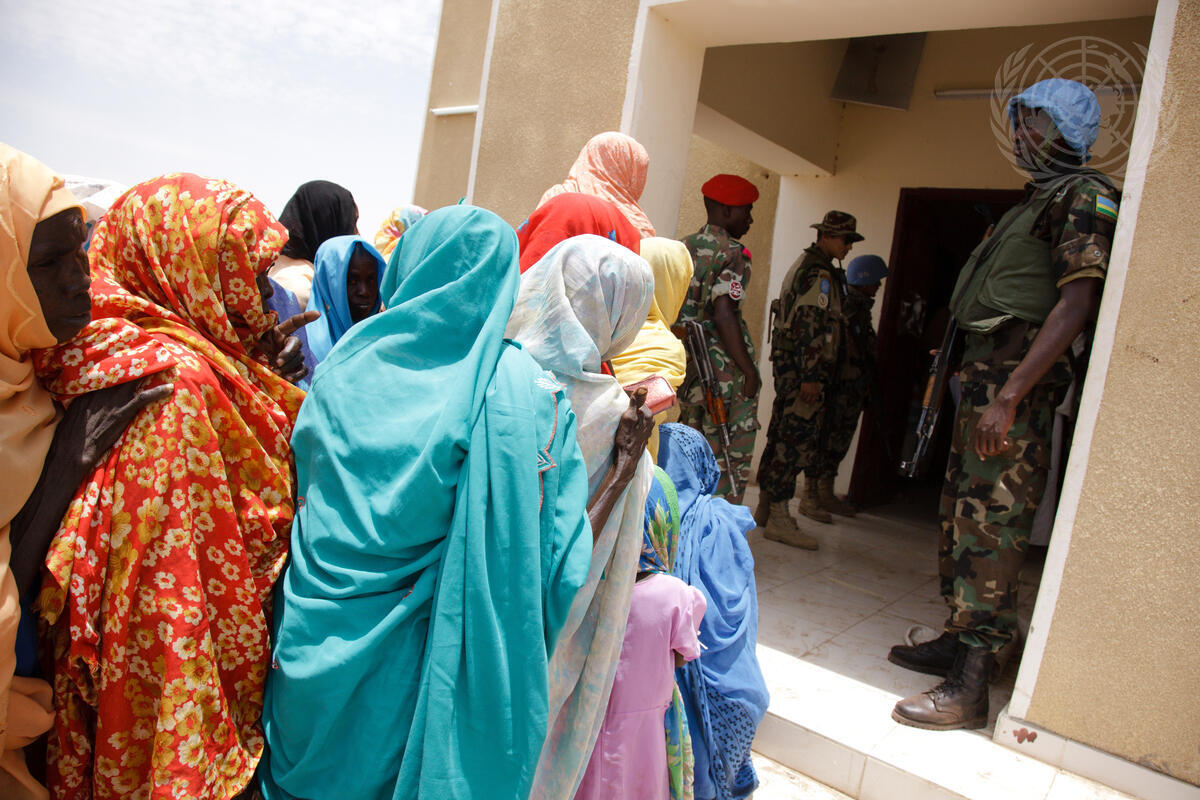 Darfuri women in Shangil Tobaya queue up to receive medical treatment from the African Union-United Nations Hybrid Operation in Darfur (UNAMID), as part of the mission’s seven-day, free medical campaign in the area.
