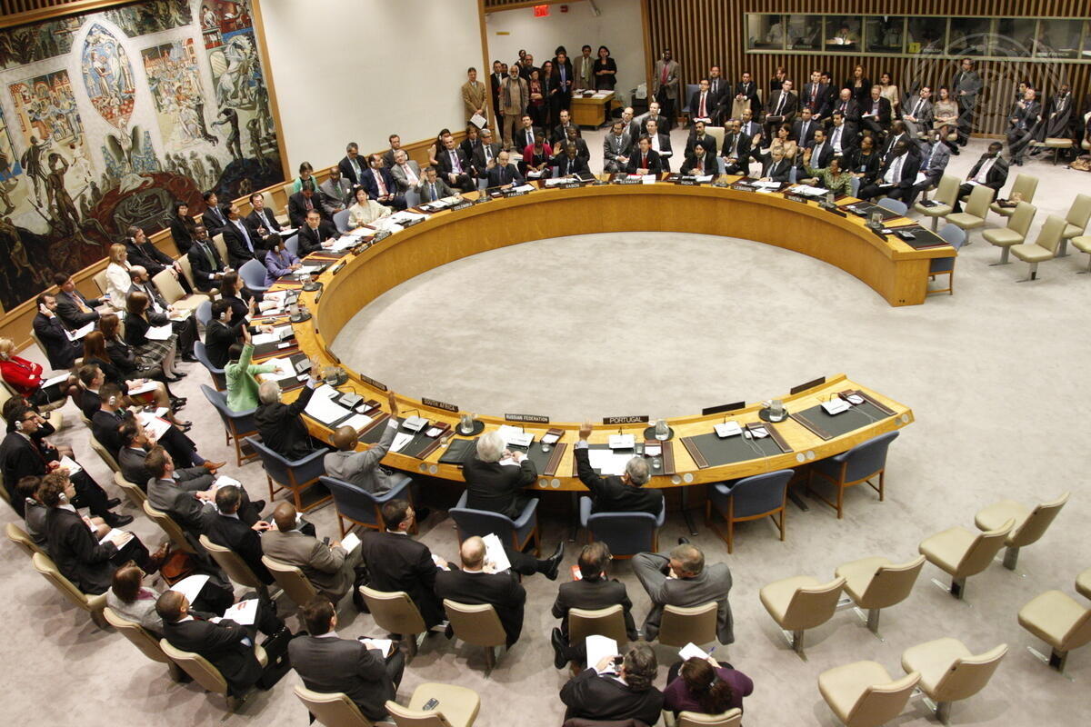 A wide view of the Security Council as 10 Members—France, Bosnia and Herzegovina, Gabon, Lebanon, Nigeria, Colombia, Portugal, South Africa, the United Kingdom and the United States—vote in favour of resolution 1973 (2011), calling for an immediate ceasefire, strengthening sanctions, and authorizing the use of military force, including a no-fly zone, in Libya, where civilians continue to come under attack from government forces led by Col. Muammar Al-Qadhafi. The resolution was adopted, having acquired the nine necessary votes in favour.