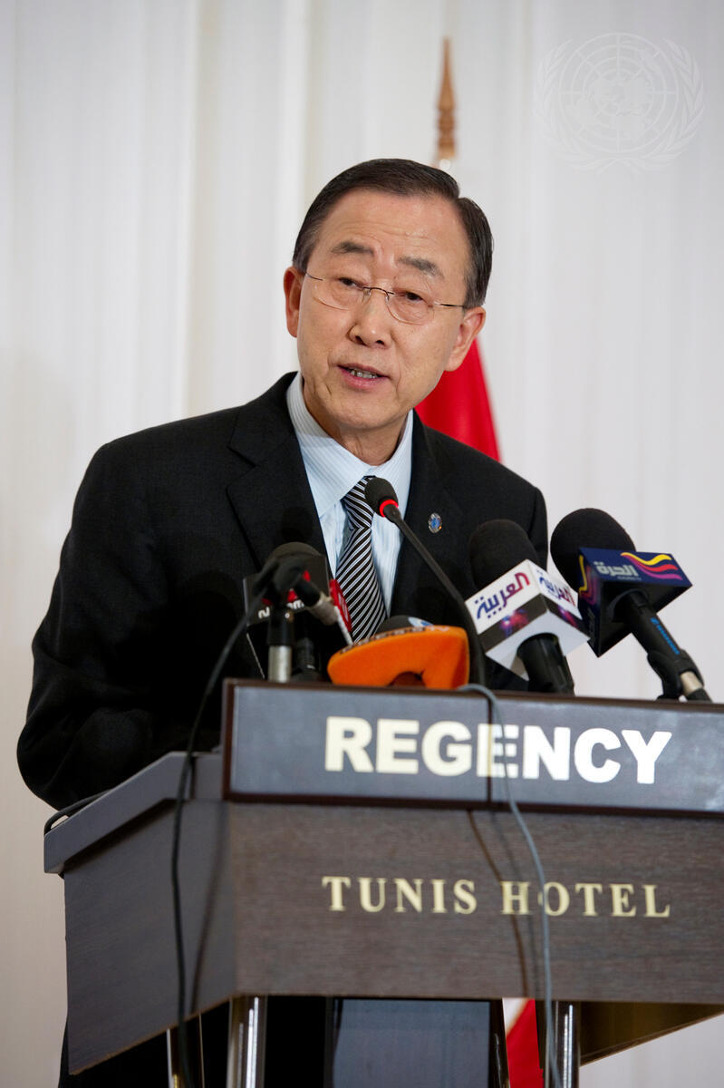 Secretary-General Ban Ki-moon addresses members of Tunisian civil society, including journalists, academics, youths, cyber-activists and those associated with non-governmental organizations (NGOs) and professional societies, making up the face of a “new Tunisia” since a pro-democracy revolution took hold over two months ago, during Mr. Ban’s official visit to Tunis.