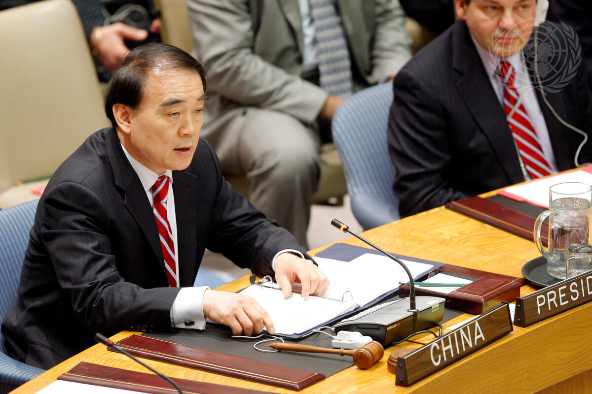 Li Baodong, Permanent Representative of the People’s Republic of China to the UN and President of the Security Council for March, chairs a meeting of the Council on the situation in Sierra Leone, at which Members considered the Secretary-General’s sixth report on the UN peacebuilding office in that country (UNIPSIL).