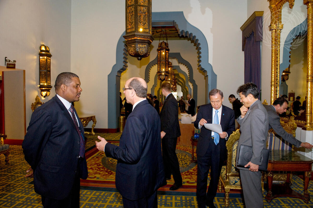 Secretary-General Ban Ki-moon (second from right) consults with senior adviser Kim Won-soo (right), his Deputy Chef de Cabinet, before meeting with representatives of Egyptian civil society, in Cairo.