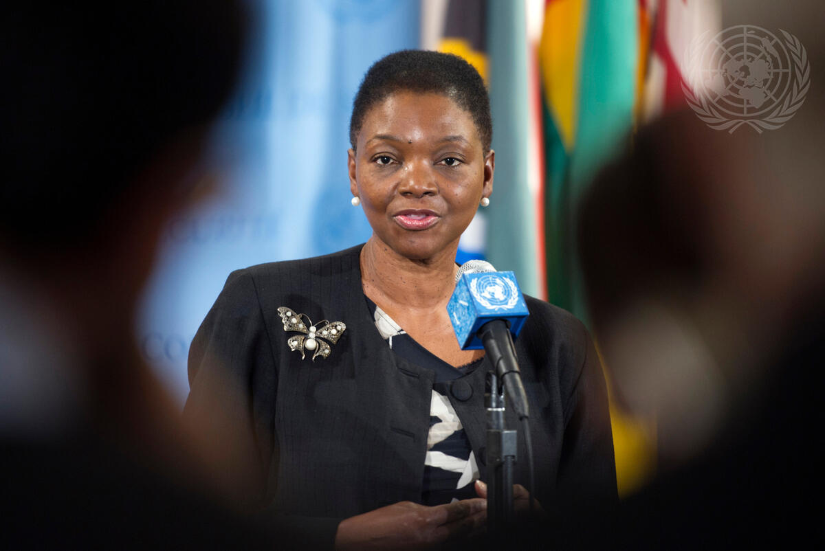 Valerie Amos, Under-Secretary-General for Humanitarian Affairs, speaks to the press following her briefing to a closed-door session of the Security Council on the humanitarian situation in the Palestinian territories, and in particular the impact of ongoing Israeli settlement activity in those territories.