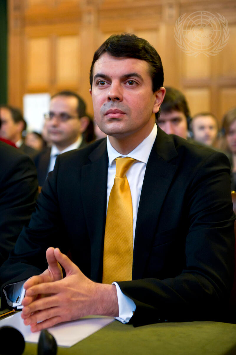 The Agent of the former Yugoslav Republic of Macedonia listens as the judgment of the International Court of Justice (ICJ) is read, in the case concerning the “Application of the Interim Accord of 13 September 1995 (the former Yugoslav Republic of Macedonia v. Greece)”.