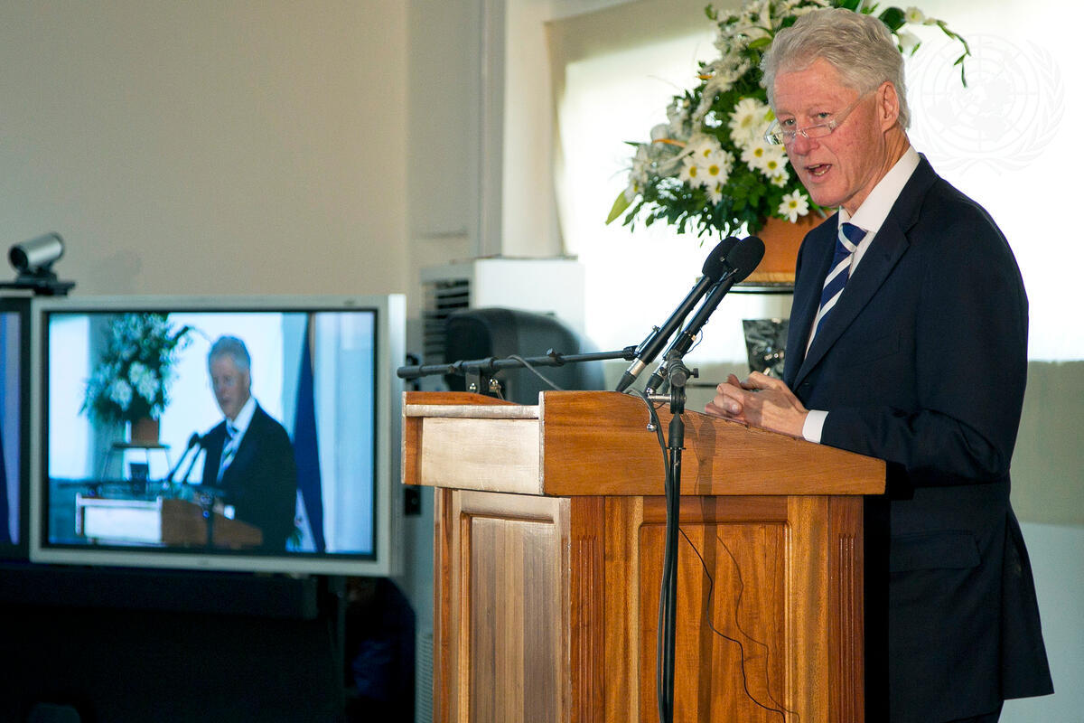 Bill Clinton, former President of the United States and UN Special Envoy for Haiti, speaks at the ceremony held by the UN Stabilization Mission in Haiti (MINUSTAH) to mark the second anniversary of the devastating earthquake that claimed hundreds of thousands of lives in the country, including those of 102 Mission personnel.