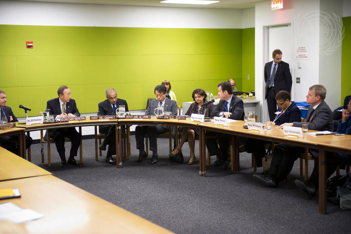 Secretary-General Ban Ki-moon (second from left) meets with a United States Congressional Delegation (CODEL) led by Representative Russ Carnahan (third from right), Democrat from Missouri. Pictured at the meeting, from left: Bill Rouhana, Chairman and CEO of Chicken Soup for the Soul and Chairman of the Humpty Dumpty Institute; Vijay Nambiar, Mr. Ban’s Chef de Cabinet; Kim Won-soo, Deputy Chef de Cabinet; Rosemary A. DiCarlo, Deputy Permanent Representative of the United States to the UN; Representative Karen Bass (D-California); and Representative Mike McIntyre (D-North Carolina).