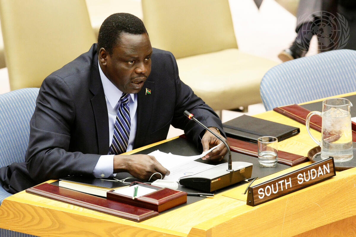 David Buom Choat, Acting Permanent Representative of South Sudan to the UN, speaks at a meeting of the Security Council on the situation in Sudan. At the meeting Members also reviewed the Secretary-General’s latest report on the African Union-United Nations Hybrid Operation in Darfur (UNAMID).