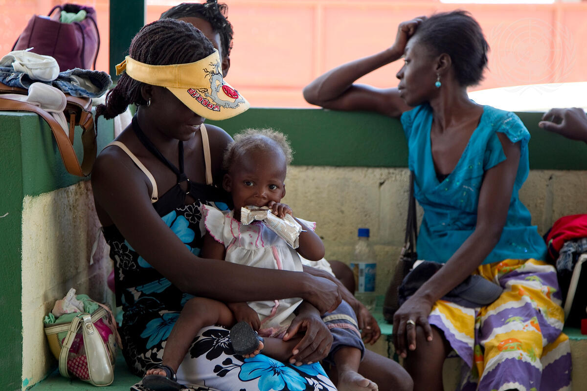 Mothers and their young children attend a free clinic in Port-au-Prince’s impoverished Cité Soleil neighbourhood, where the UN Stabilization Mission in Haiti (MINUSTAH)’s Violence Reduction Section is working with a volunteer association to help disenfranchised women.