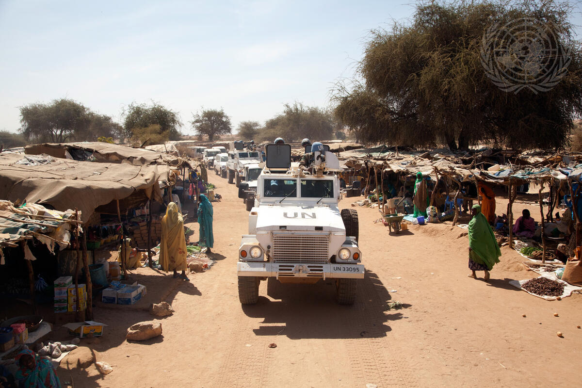 South African troops with the African Union-UN Hybrid Operation in Darfur (UNAMID) are shown on patrol at Kassab Camp for Internally Displaced Persons (IDPs), in Kutum, North Darfur, as the head of the mission, Ibrahim Gambari, meets with the camp’s residents. More than 25,000 people live at Kassab and UNAMID troops organize patrols every day to monitor the area.