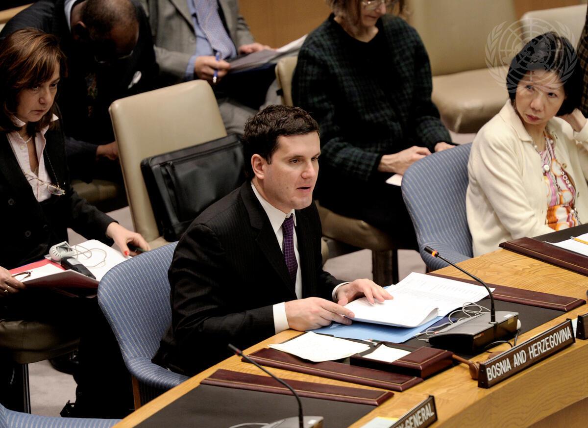 Ivan Barbalic (left), Permanent Representative of Bosnia and Herzegovina to the UN and President of the Security Council for January, chairs a meeting of the Council on Nepal. Members heard a final briefing from the Secretary-General’s Representative in the country, Karin Landgren, 10 days before the UN Mission in Nepal (UNMIN) concludes its mandate.
