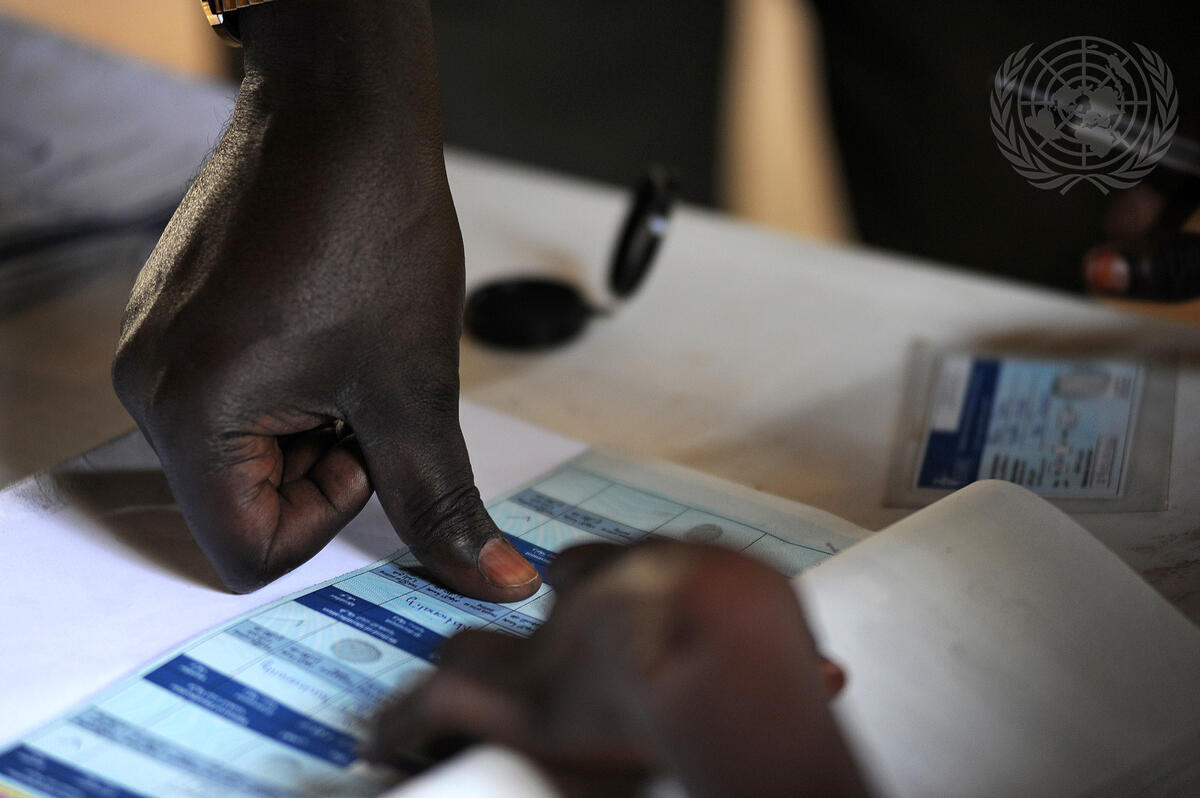 A voter gives his fingerprint at a polling station in Juba, capital of South Sudan, on the first day of balloting in the South's long-awaited self-determination referendum. Voters turned out in huge numbers for the referendum, with many sleeping at polling centres in order to be among the first to cast ballots.