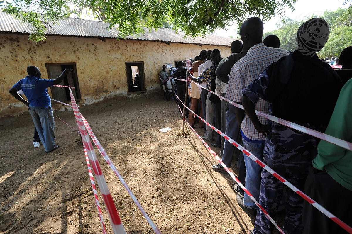 Voters queue in large numbers outside a polling centre in Juba, capital of South Sudan, on the first day of balloting in the South's long-awaited self-determination referendum. Many voters slept at polling stations in order to be one of the first to cast ballots in the plebiscite which will determine whether Sudan remains united or Southern Sudan secedes to form a new country.