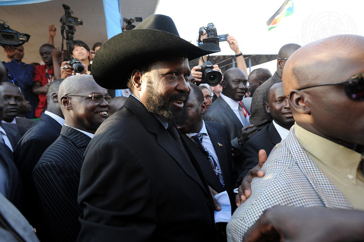 Salva Kiir Mayardit (centre), President of the Government of Southern Sudan and First Vice President of the Republic of the Sudan, is pictured in Juba shortly after voting in his region’s long-awaited referendum on self-determination, which began today, January 9. The historic vote drew out South Sudanese in huge numbers, with many sleeping at polling stations in order to be one of the first to cast their ballots.